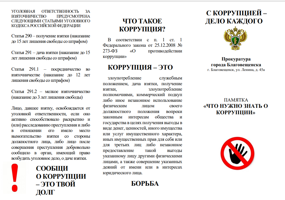 Памятка генеральной прокуратуры Российской Федерации “Что нужно знать о коррупции?”